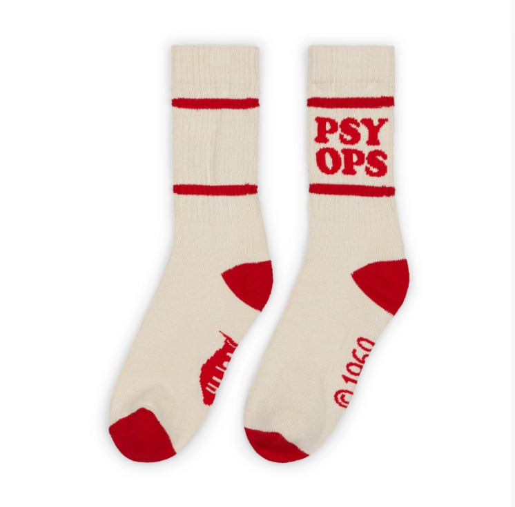1960年代アメリカのカウンターカルチャーと、CIAの“Psy-Ops(心理作戦)”をめぐる不穏な陰謀をテーマにした TSPTR のヘビーウェイト・オールコットンソックス。