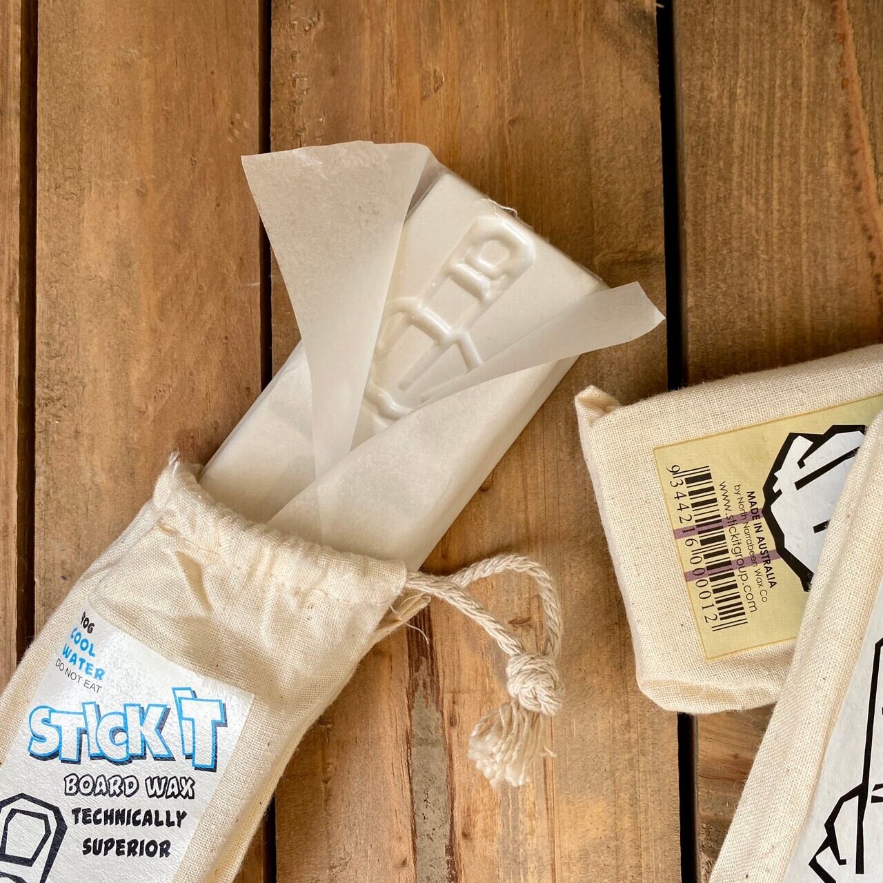 ◆STICK IT Made in AUSTRALIA 可愛い袋入りのパッケージ。中のワックスには紙が巻かれているので、チョコレートのアルミを破るように、必要な紙を破いて塗れば、手も汚れません。tropicalはベースコートとしてもお勧め。ウエットに付着しづらい、さらっとワックスご希望の方にお勧め。