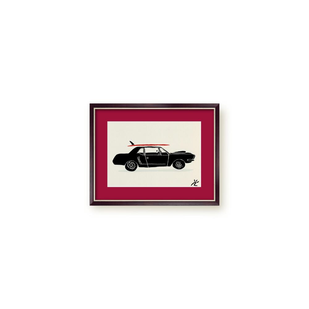 デザインが施された幅広のフレームが、絵の存在感を引き立ててくれます。